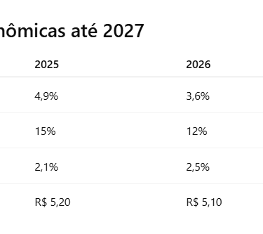 O Banco Central divulgou projeções preocupantes: a inflação só deve atingir a meta oficial em 2027. A taxa Selic, usada para controlar os preços, permanece em 15% ao ano — um dos maiores patamares globais.